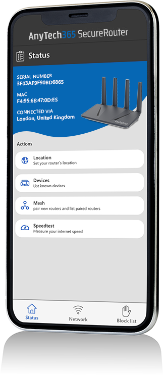 The AnyTech365 SecureRouter addresses this risk by adding a security layer on top of your network, always ensuring its protection. And we update our routers regularly and automatically, so you do not have to worry.
